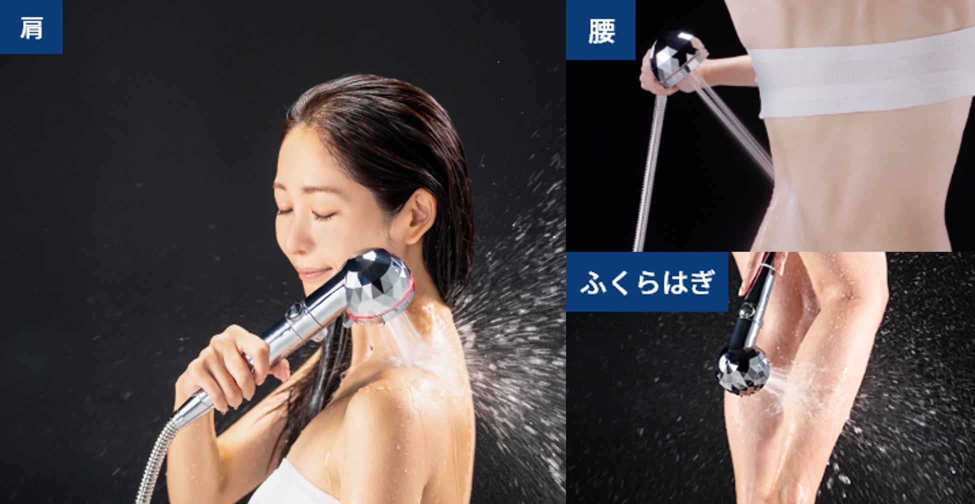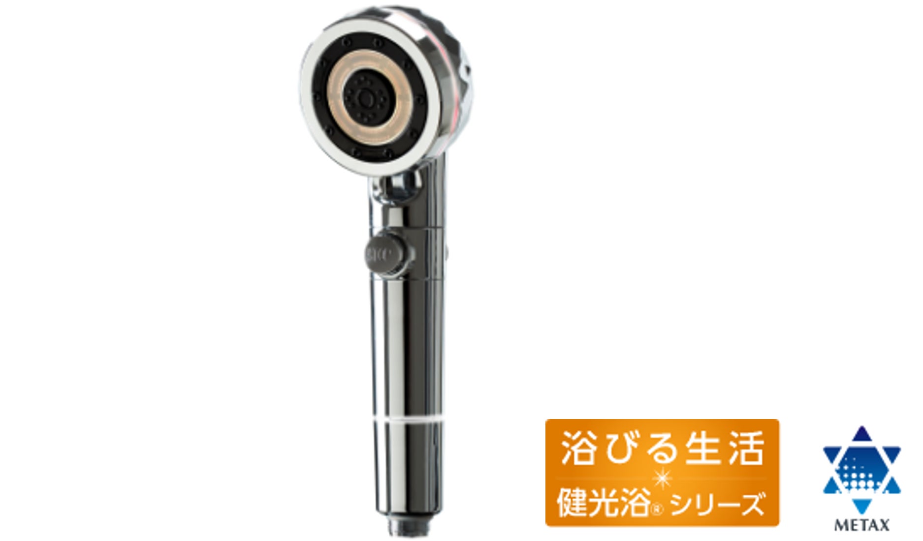 独自素材のMCC(メタックスカーボンセラミック)を配合したシリコーンや樹脂などに光を当てることで放射される光のこと。医療の現場やアスリートのケアにも使用されており、照射部位の筋肉をほぐし、リラックスさせる効果が期待できます。髪の毛、顔、カラダに「健光浴®」の光と水を浴びることで、筋肉のこリや顔のシワにアプローチ。いつものシャワータイムでボディケアとスキンケアの両方のケアを実現します。