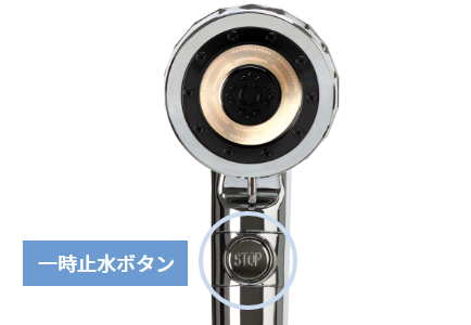 手元にはワンタッチで水を止められる一時止水ボタンを配置し、水の出しっぱなしを防ぎます。