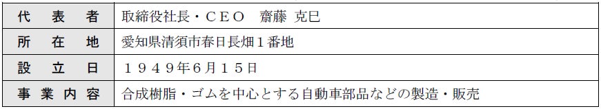1949年にトヨタ自動車のゴム研究部門を母体として創業。トヨタグループをはじめ、国内外のカーメーカーへエアバッグやハンドル、フロントグリルなどの内装・外装部品を提供している。また、創業以来培ってきたゴム・プラスチック分野の知見を活かした材料のリサイクルの推進やスタートアップなどとの連携による新規事業の開拓にも注力している。