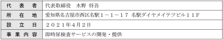 「すぐわかるを、もっと身近に」をスローガンに掲げ、尿から体の状態を即時解析する事を目的とし、2021年に東京大学との共同研究で立ち上がったヘルスケアスタートアップ。独自バイオマーカーの研究による解析・計測技術の開発、検出したデータを簡単にモニタリングできるスマートフォンアプリの開発、尿から解析した体の状態による日々のパフォーマンス改善サポートなどの研究開発を行っている。