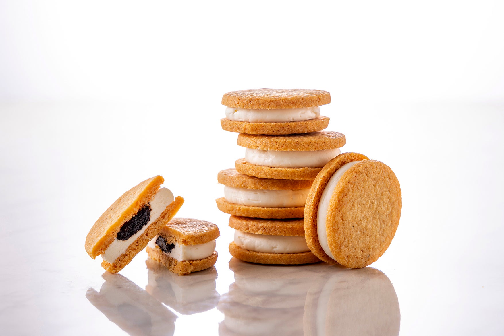 ベルグの4月オリジナルの木苺マカロン生地で独自ブレンドのふわふわ生クリームをたっぷりとサンドしたトゥンカロン。仕上げに国産いちごをトッピング。