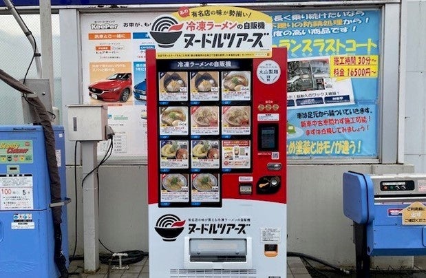 仙台市内に3店舗目!仙台市青葉区のコスモ石油特約店のガソリンスタンドにて冷凍ラーメン自販機『ヌードルツアーズ』販売開始
