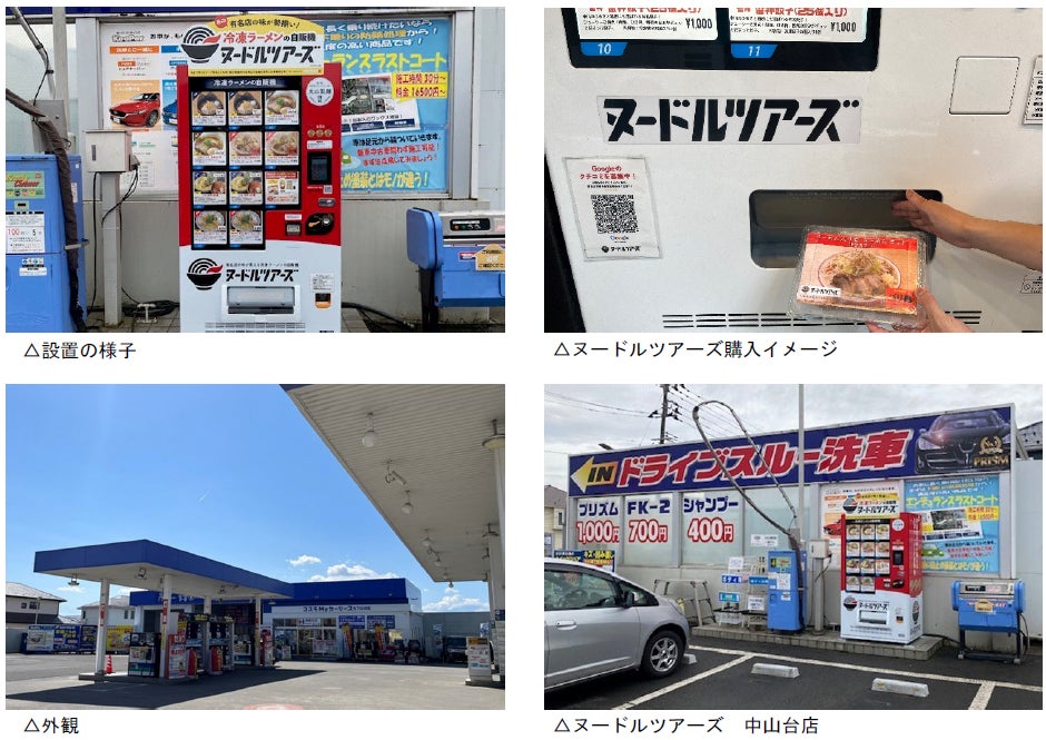 昭和33年創業の業務用麺類製造業を行う株式会社丸山製麺(本社:東京都大田区、代表取締役:丸山和浩)は、有名ラーメンの“本物のスープ”と丸山製麺の“麺”を使ったコラボ商品が購入できる冷凍ラーメン自販機『ヌードルツアーズ』( https://noodle-tours.com/ )を、北日本石油株式会社(本社:東京都中央区、代表取締役社長:渡邉勇人)が運営する宮城県仙台市青葉区のコスモ石油サービスステーション「セルフステーション中山台(宮城県仙台市青葉区中山台西1番地8)」内に「ヌードルツアーズ 中山台店」を設置し、販売開始しました。