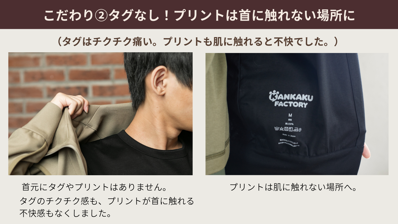 縫い目は外側、タグなしをコンセプトに、肌が敏感な方や触覚の過敏性がある方だけではなく、あらゆる人にとって着心地の良い衣服をお届けするインクルーシブファッションブランドです。