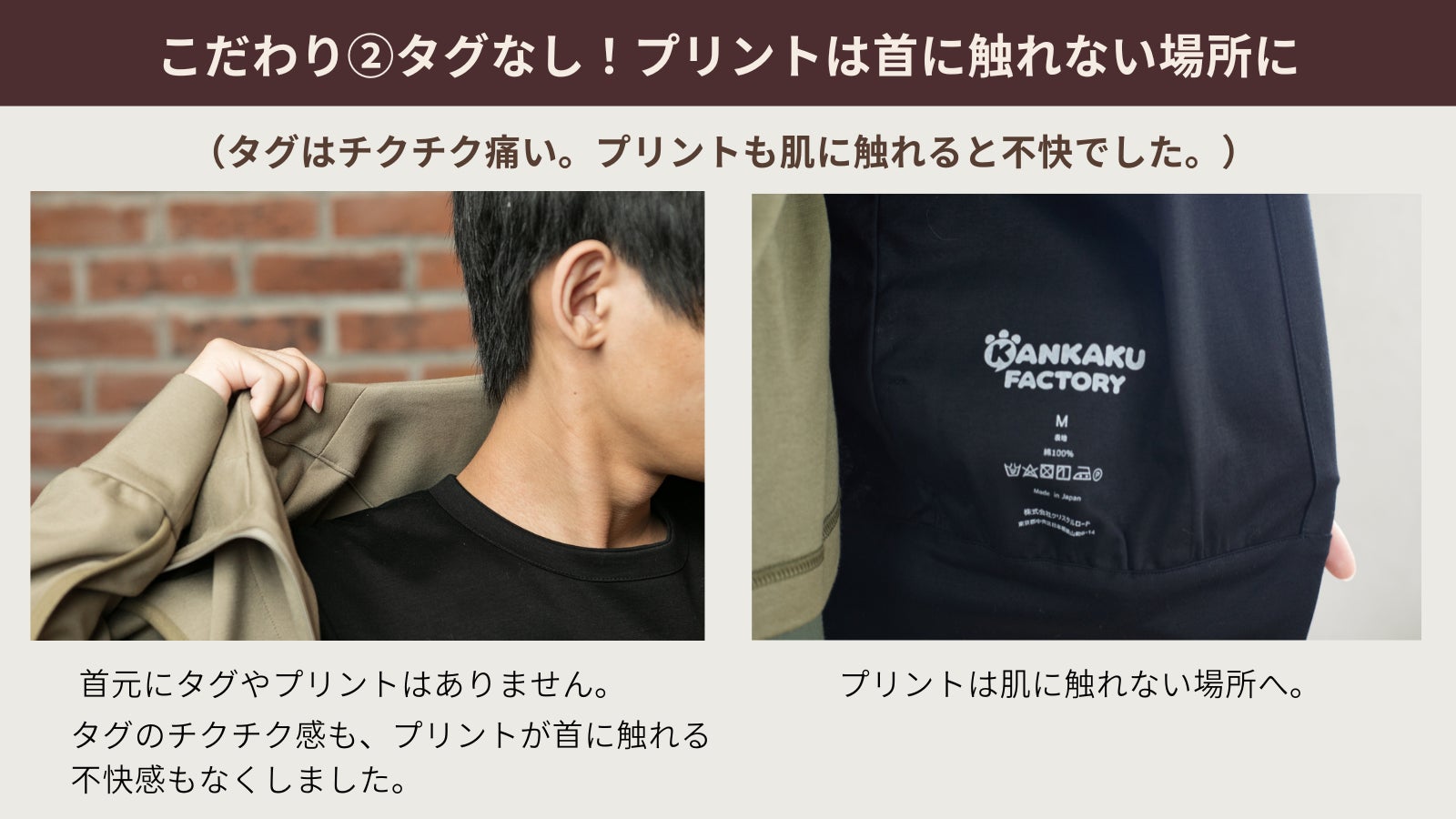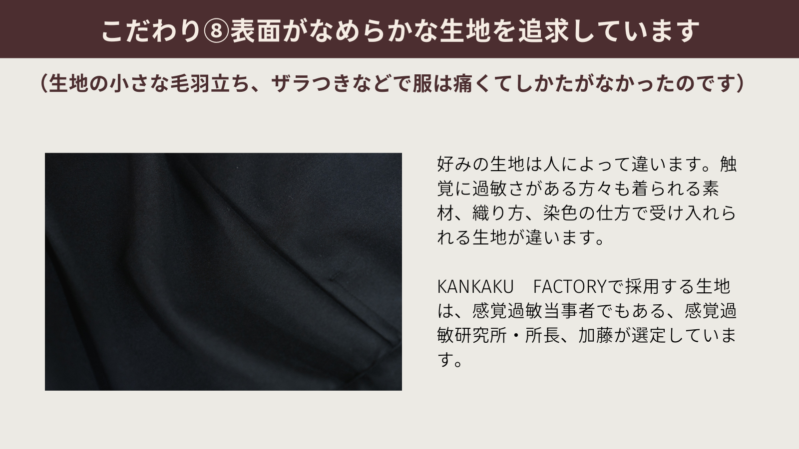 服の縫い目やタグ、生地の肌触りによって、痛みや不快感を感じやすい感覚過敏の課題解決のために、感覚過敏研究所の所長・加藤路瑛が高校生の時に立ち上げたアパレルブランドです。