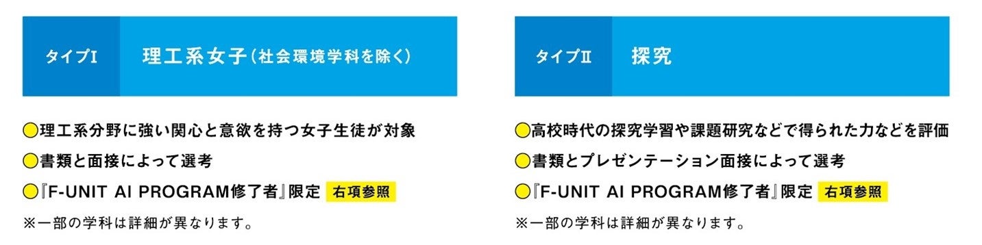F-UNIT AI PROGRAMから出願できる福工大の新しい総合型選抜は2タイプです。