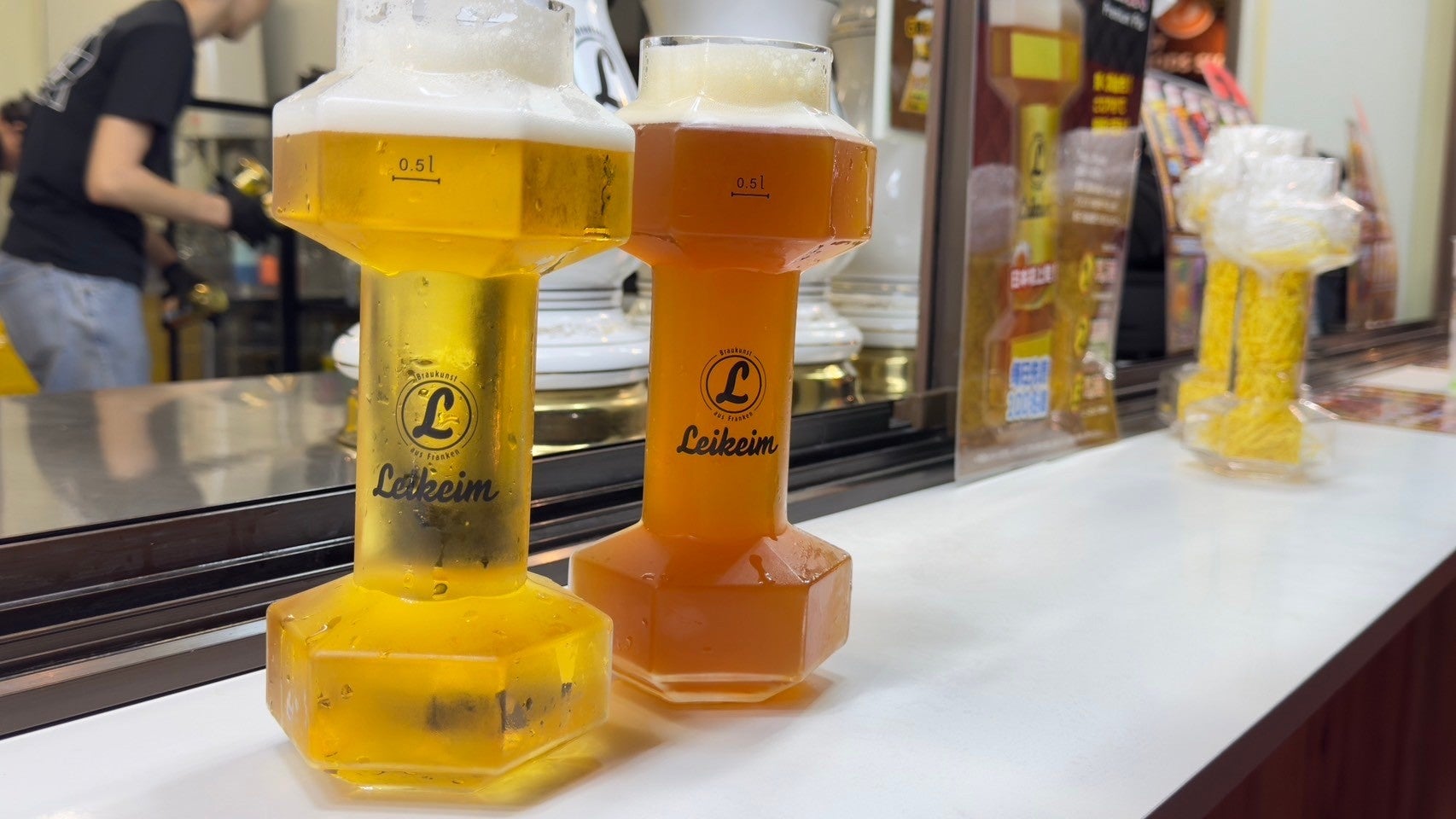 また、春に開催したオクトーバーフェストの会場でも大人気!ライカイムの「ダンベル型」のビールジョッキも登場!