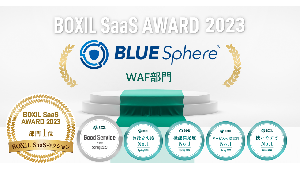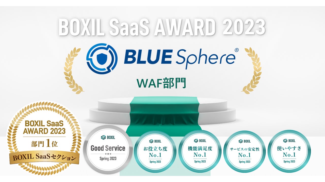 株式会社アイロバ(東京都千代田区、代表取締役:小林直樹、以下「アイロバ」) が提供する「BLUE Sphere」は、スマートキャンプ株式会社(以下「スマートキャンプ」)が今最も評価されているSaaS(※1)を表彰する「BOXIL SaaS AWARD 2023」においてBOXIL SaaSセクション WAF部門1位に表彰されました。また、同日に発表された「BOXIL SaaS AWARD Spring 2023」でWAF部門の「Good Service」ほか4つのNO.1「サービスの安定性No.1」,「機能満足度No.1」,「お役立ち度No.1」,「使いやすさNo.1」に、併せて選出されたことをお知らせします。