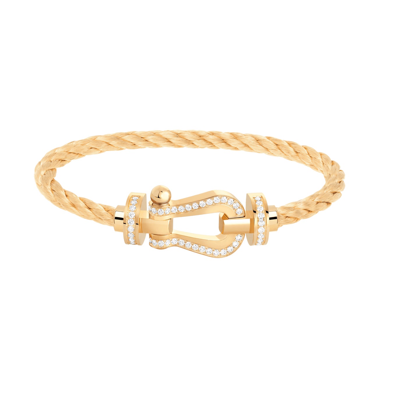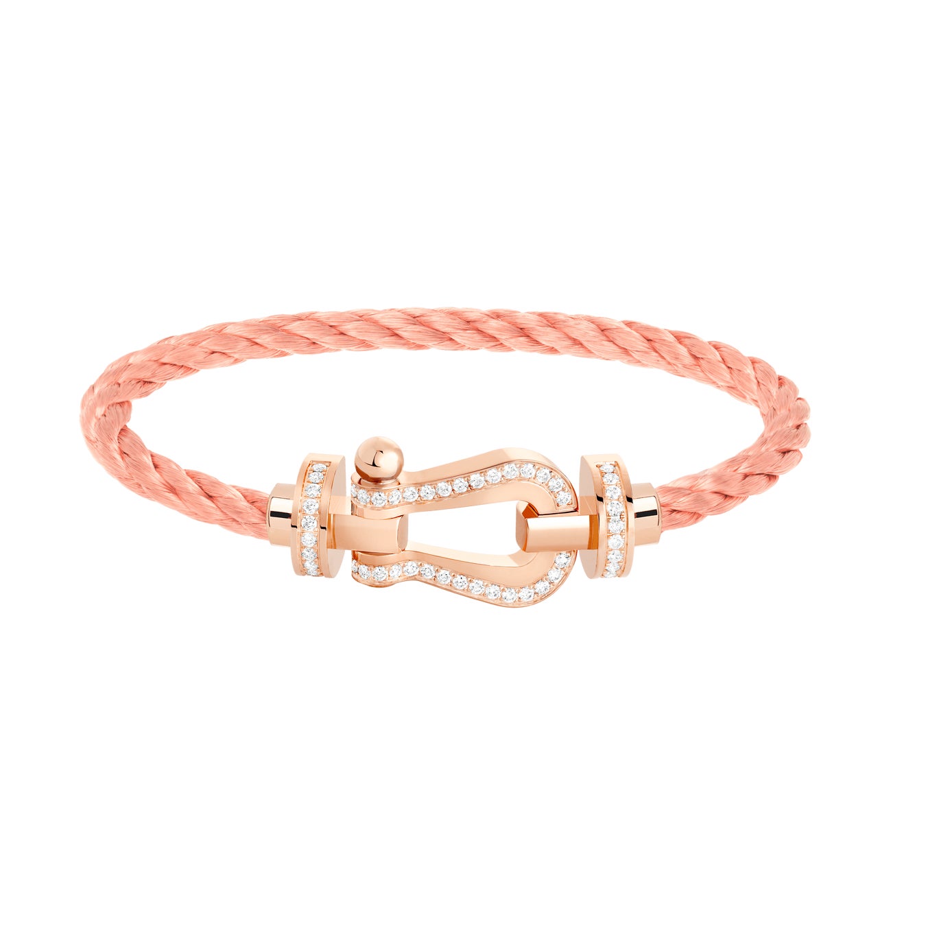 イエロー・ピンク・ホワイトゴールドの3色から選べるバックルには、プレシャスなパヴェが新たなデザインで施されています。このクリーンでグラフィカルなタッチは、バックルのループと両端に一列に並んだホワイトダイヤモンドを際立たせています。フォース10の大胆なスタイルを特徴づけるカジュアルシックなスピリットとともに身につけ、強く輝くその人らしさへの賛歌です。
