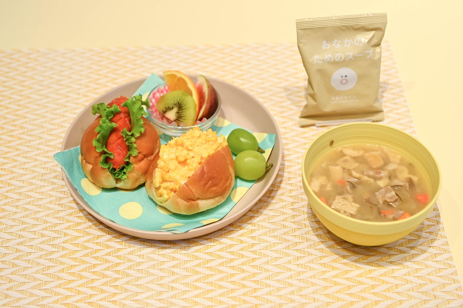 新商品の「おなかのためのスープ」は、こどものうんちの悩み、栄養の悩みを解決し、手軽に作れるフリーズドライのみそ汁です。