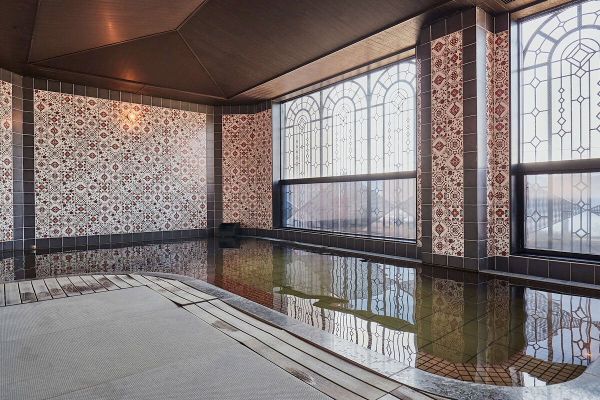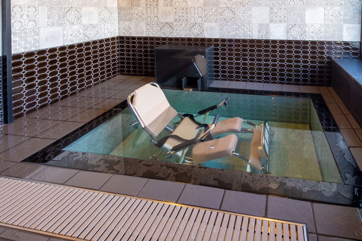 温泉は、若返り効果の高い自家源泉「美翠源泉」注ぐ畳風呂や、車椅子のまま入れる昇降式貸切温泉も。健常者、障がい者、ご年齢問わず、どなたでも安心してご入浴をお愉しみいただけるお風呂をご用意しております。