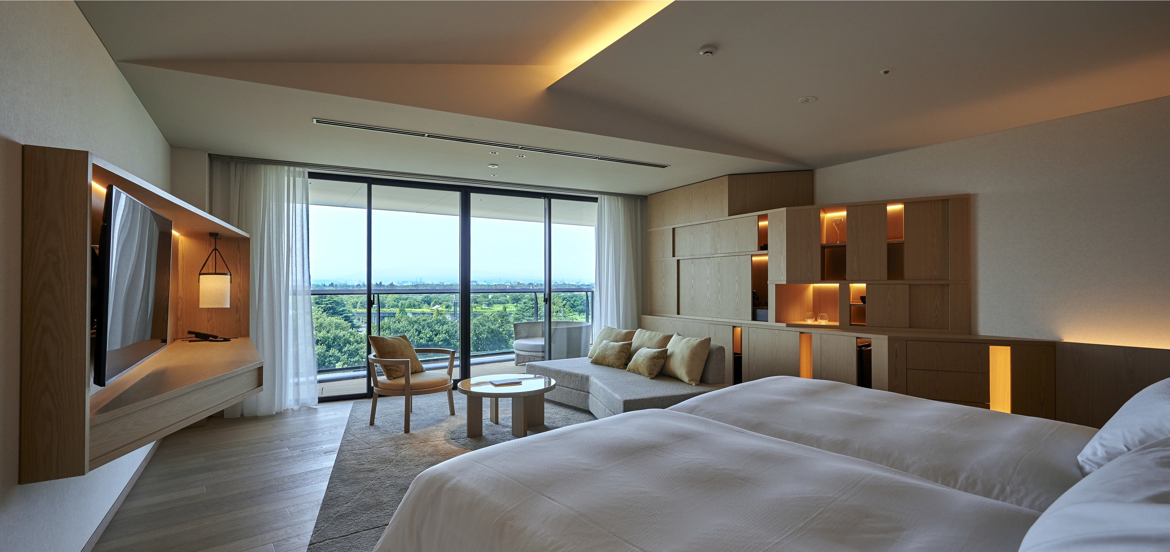 ソラノホテルには、目の前に広がる昭和記念公園の緑に癒される全室52㎡以上の客室、独自に掘削した温泉水を使用した温浴施設でゆっくりと体を温められるスパ施設、空を間近に感じながらトレーニングのできるジムスタジオ、ご夕食には安心・安全なインルームダイニングも完備。この機会にSORANO HOTELでごゆっくりとお過ごしください。