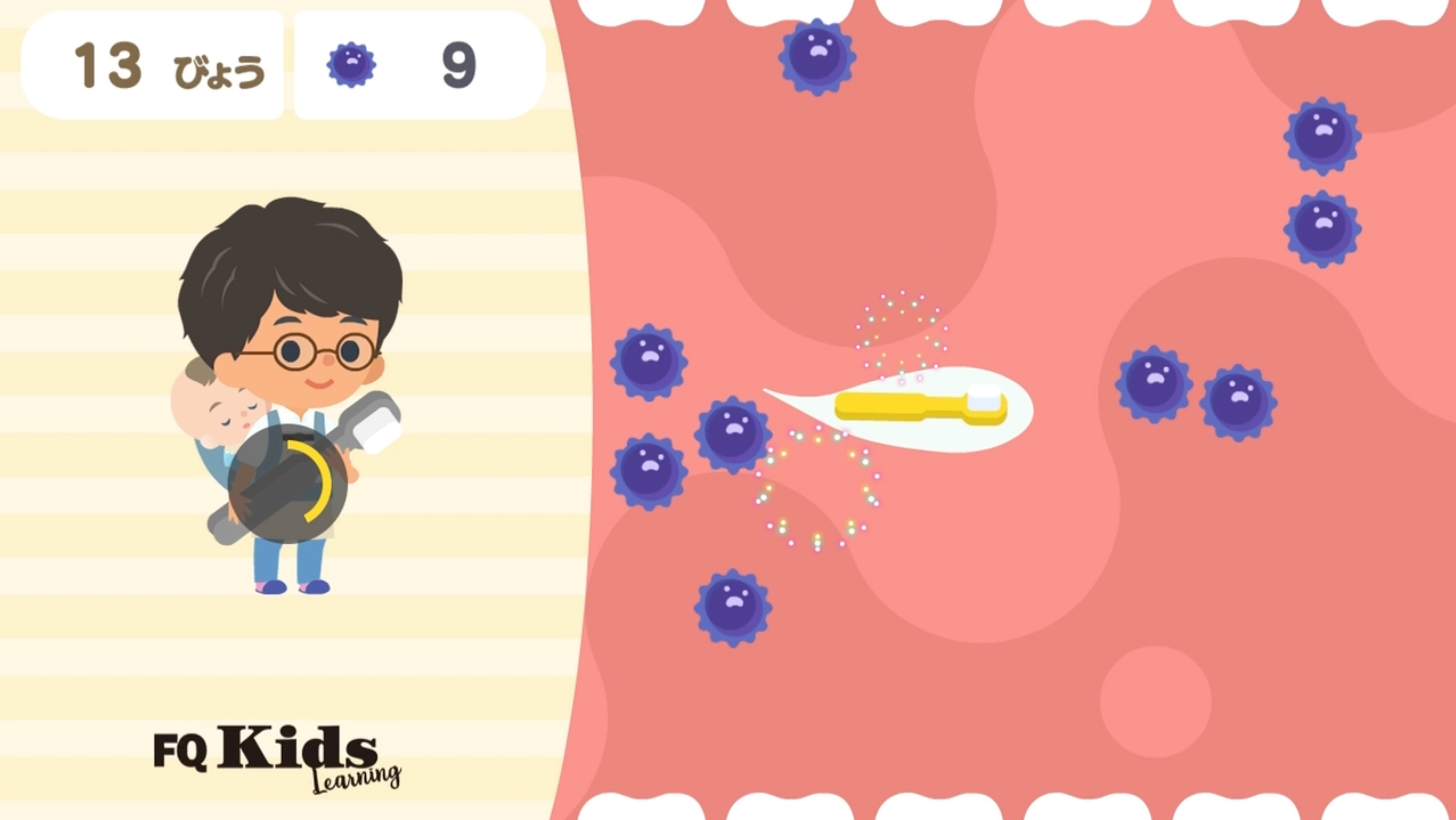 画面をタッチして虫歯菌をやっつけよう!