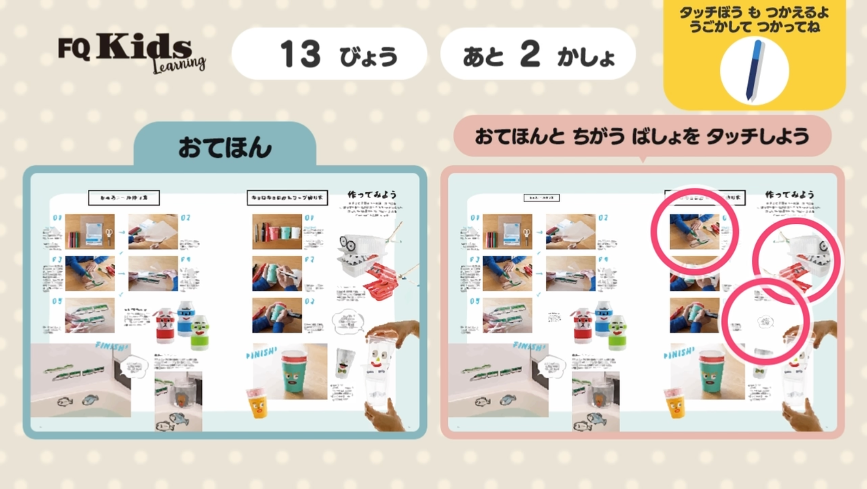 お手本と見比べて間違っている場所をタッチしよう!