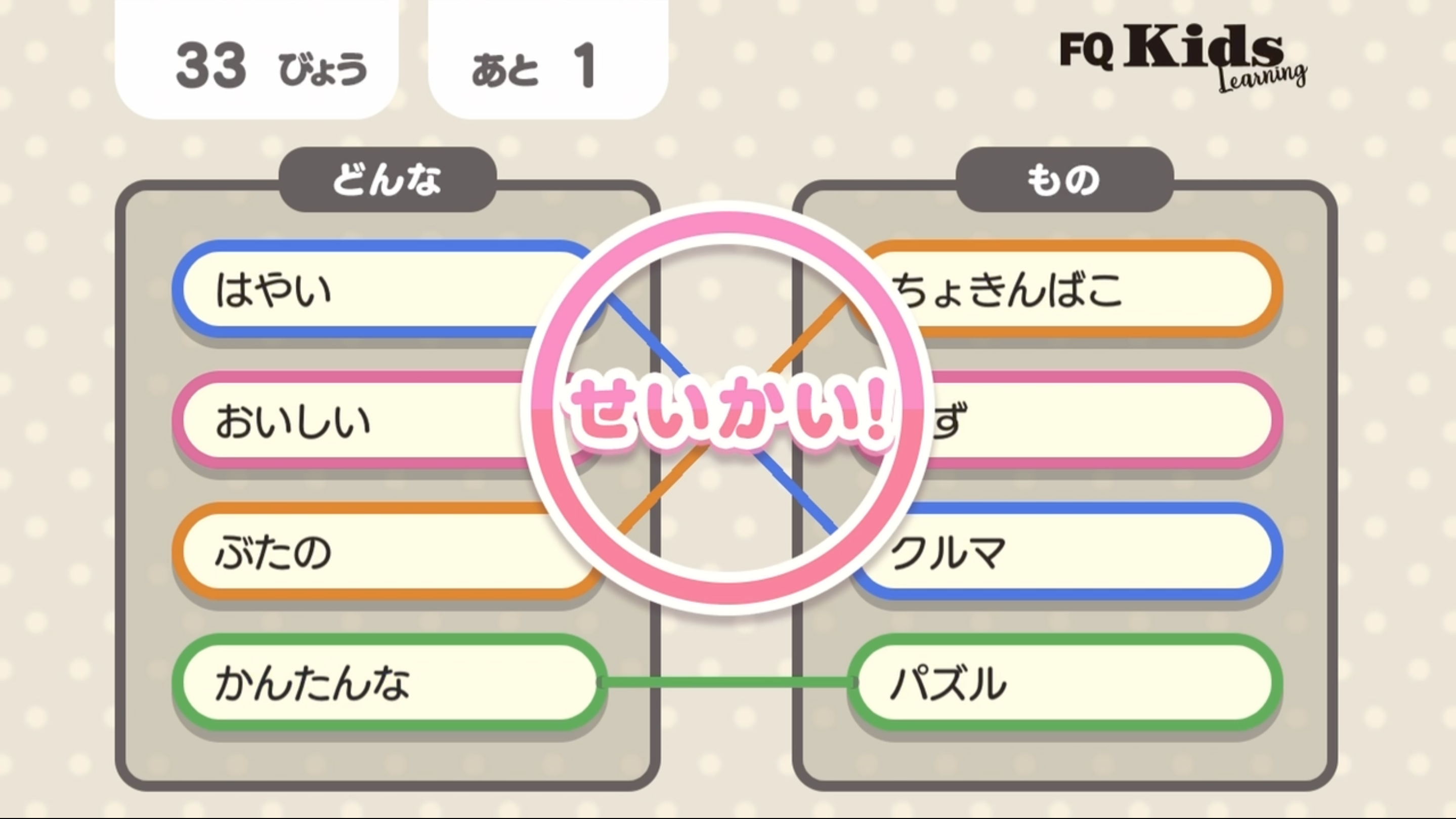 正しい言葉の組み合わせになるようにタッチしよう!