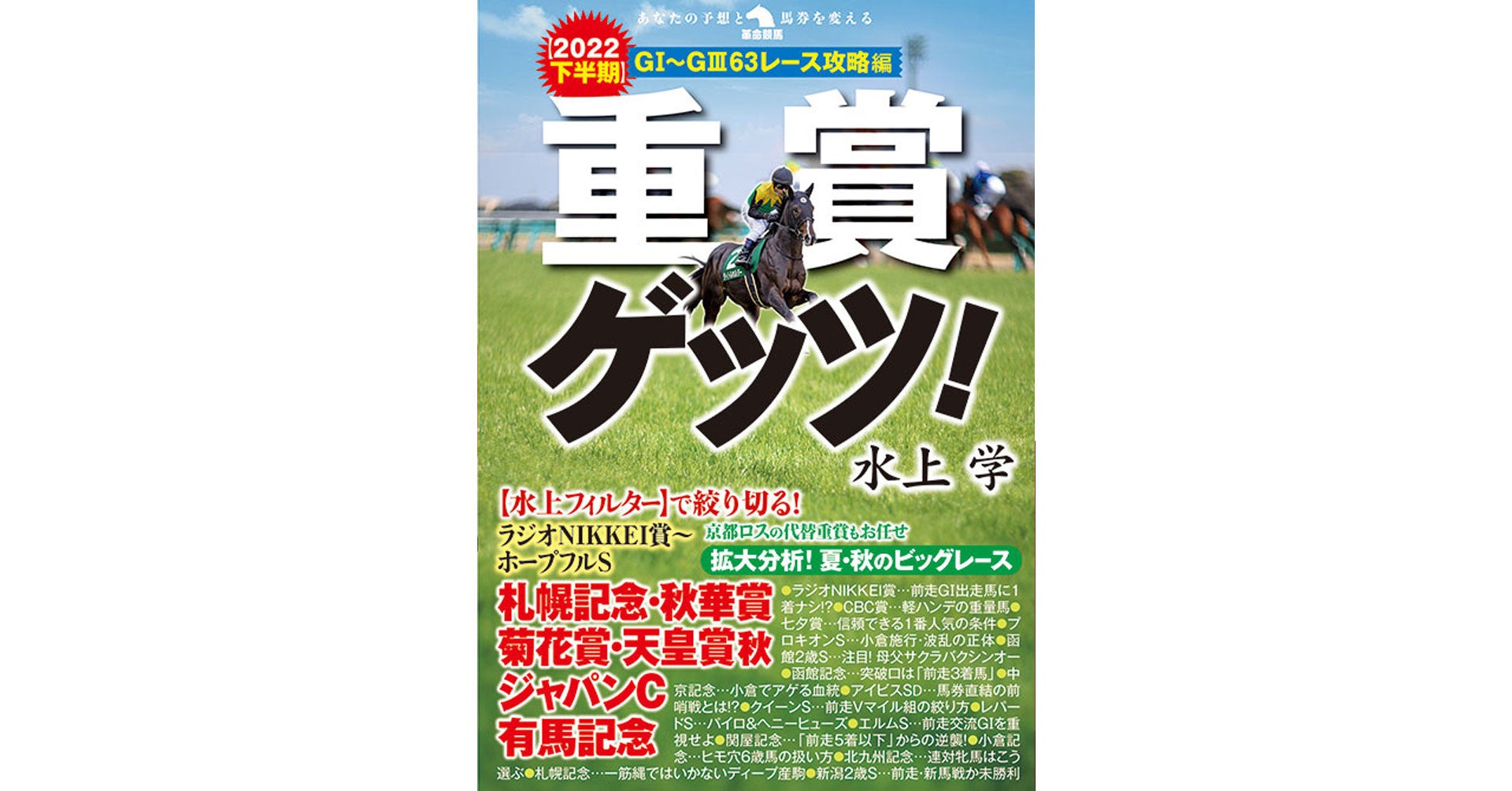 好評の第1弾・上半期編に次ぎ、2022年7~12月・ラジオNIKKEI賞~ホープフルS)のGⅠ・GⅡ・GⅢ全63レース分を掲載!京都ロスによる変則施行の重賞も、水上の頭脳にお任せ!