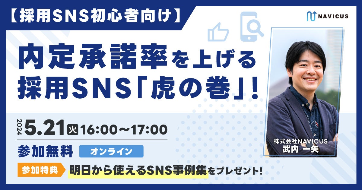 【5/21 開催】採用SNS初心者必見!無料オンラインセミナー『内定承諾率を上げる採用SNS「虎の巻」!』開催のお知らせ