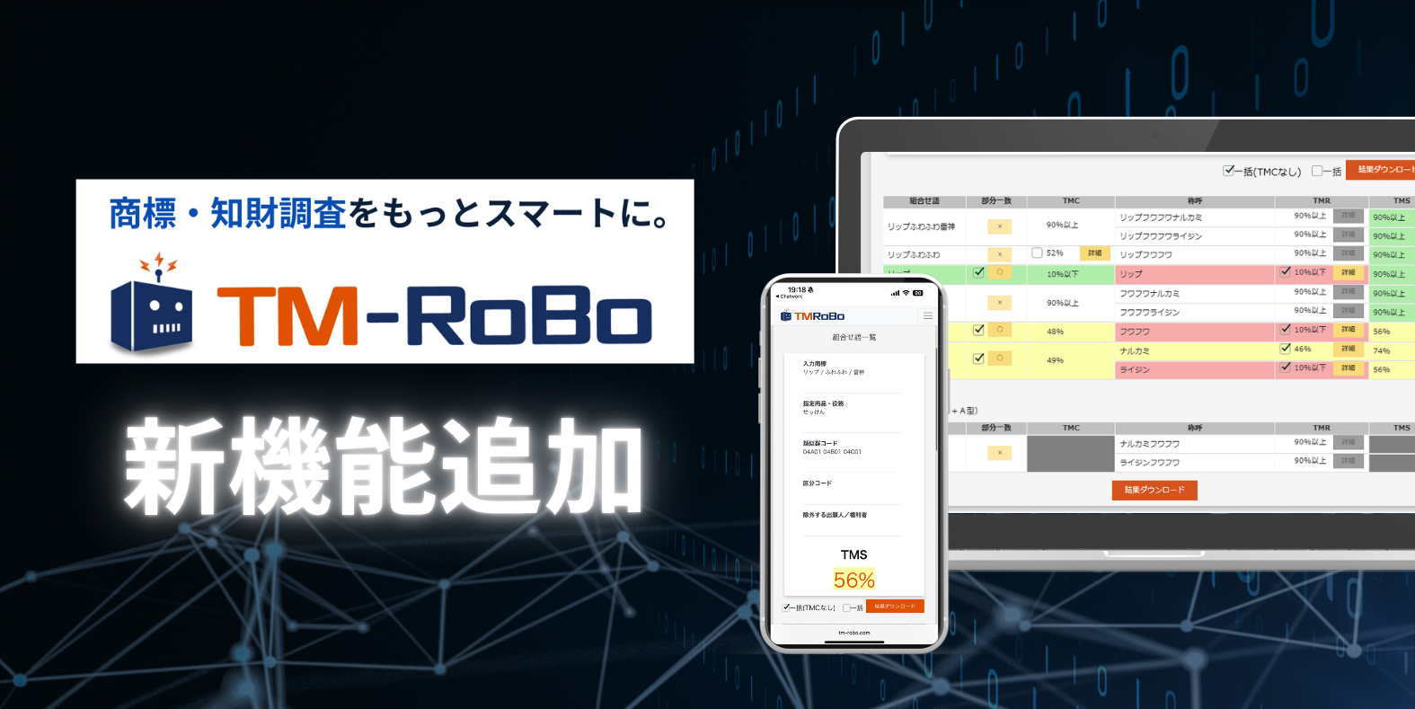 TM-RoBoの商標検索機能に、調査商標に関係する出願・登録状況をこれまで以上により深く反映する機能追加を行い、2026年4月1日(水)よりサービス提供を開始いたします。
