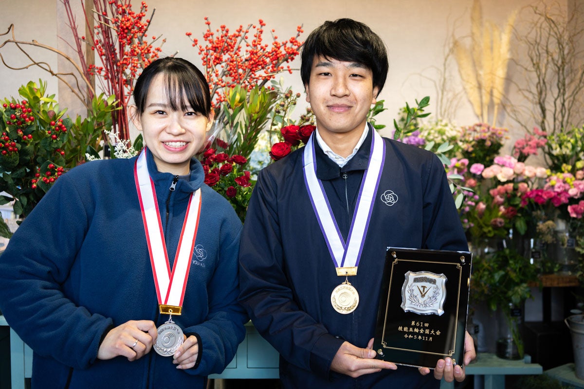 令和5年11月17日〜19日に開催されました第61回 技能五輪全国大会 フラワー装飾部門において、株式会社ユー花園(本社:東京都世田谷区 代表取締役社長 CEO:山田大平、以下「ユー花園」)施工部 松田睦輝が技能五輪全国大会 フラワー装飾部門 金賞を、デザインワークス課 松窪陽菜が技能五輪全国大会 フラワー装飾部門 銀賞を受賞いたしました。