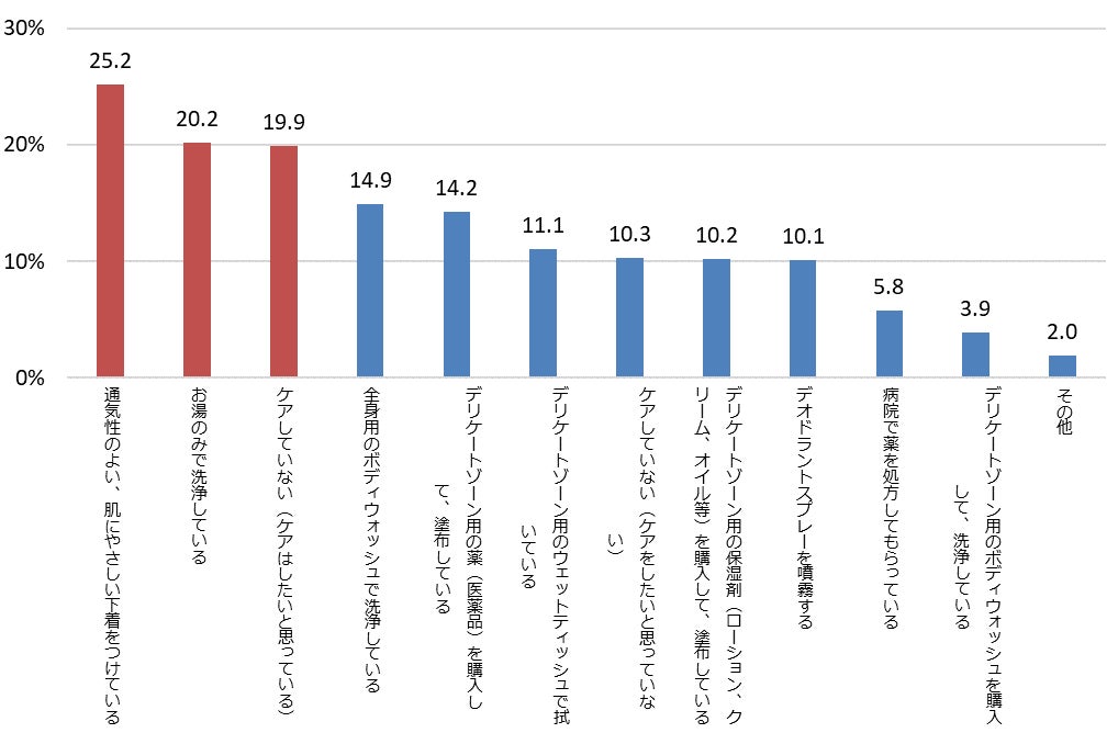 しかし、別途実施した女性へのアンケート調査*によると、「パートナーの男性のデリケートゾーンのニオイ※1 が気になったことはありますか?」との質問に対し、男性の回答の2倍以上となる、約7割の女性が「はい」と回答しています。