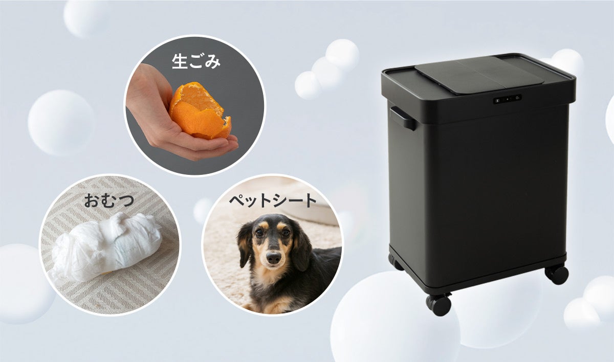 オゾンが生ごみや使用済おむつ、ペットケア用品などの気になるニオイに反応して除去してくれます。