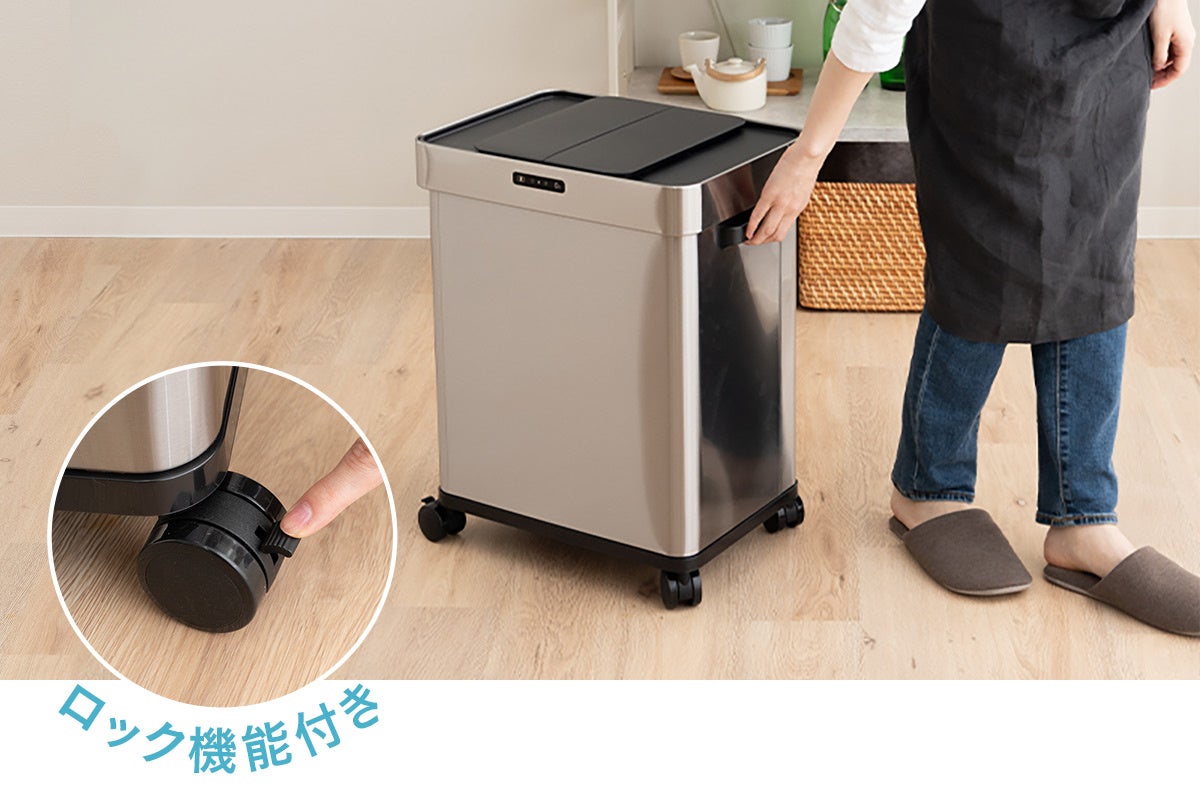 自動開閉機能、オゾン消臭機能付き キャスター付き(ストッパー付2個、ストッパーなし2個) |