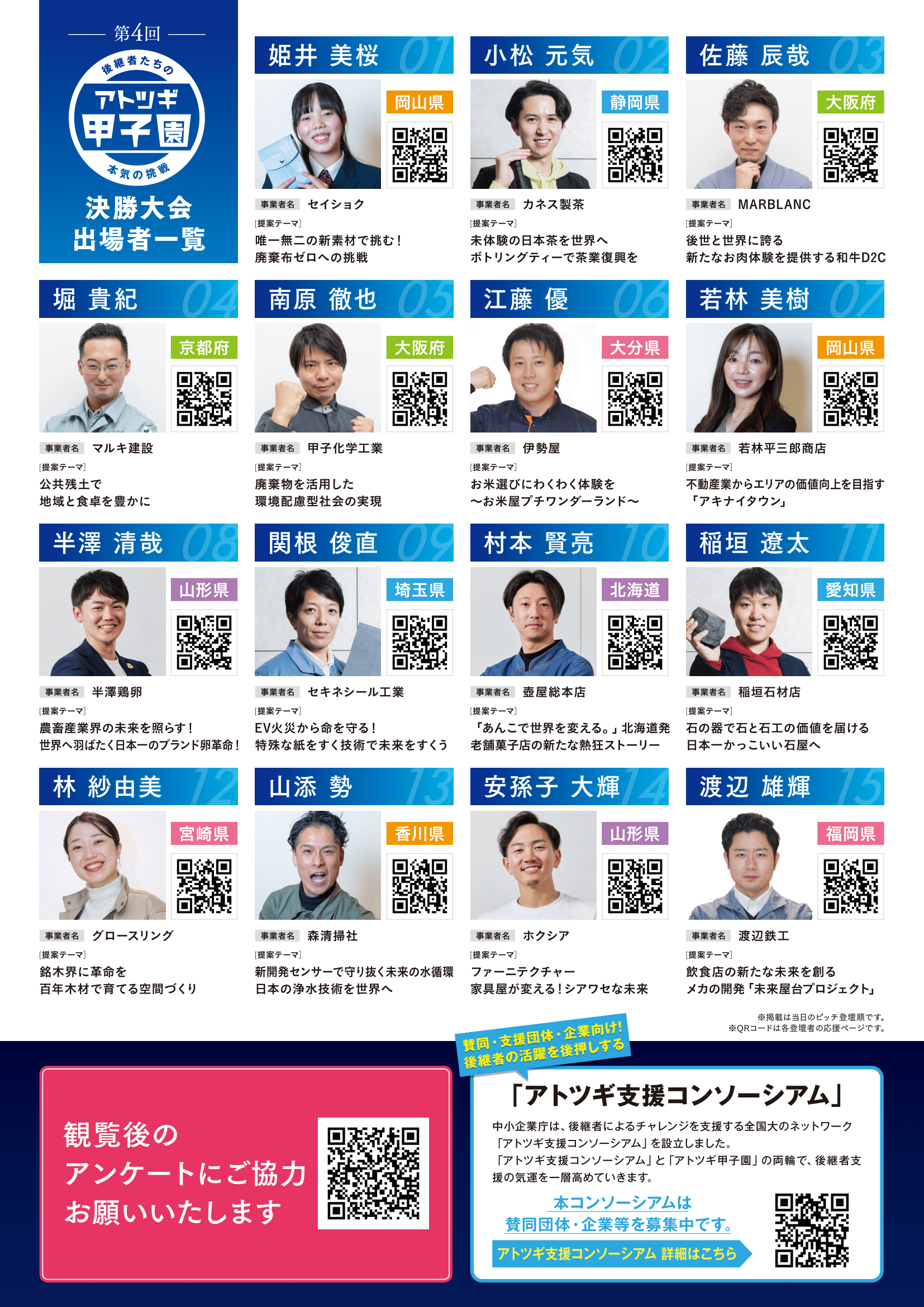 <第4回「アトツギ甲子園」決勝大会出場者一覧(ピッチ登壇順)>