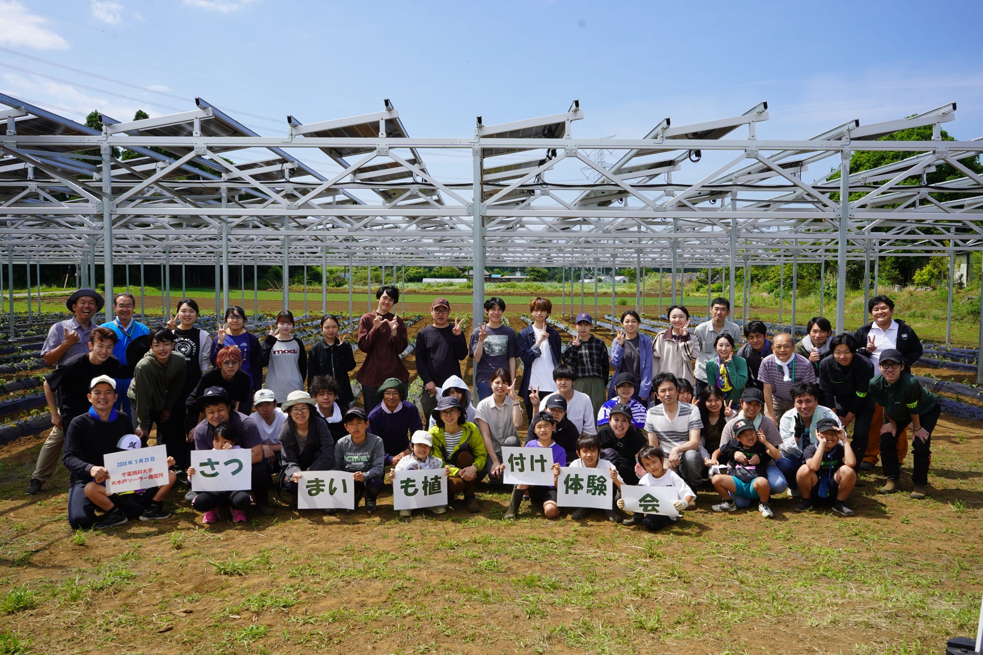 株式会社つなぐファームは、2018年2月より千葉市緑区大木戸町にて「農地・ひと・地域を次の世代につなぐ」をコンセプトに掲げ、再生可能エネルギーと食料を同時に生み出す「営農型太陽光発電」を取り入れた持続可能な農業を実践しています。これまでも、地域の方々や子ども達はもちろん、千葉市という立地を活かし、都市部の方々にも農業に触れてもらうきっかけとして定期的に農業体験イベントを実施しています。