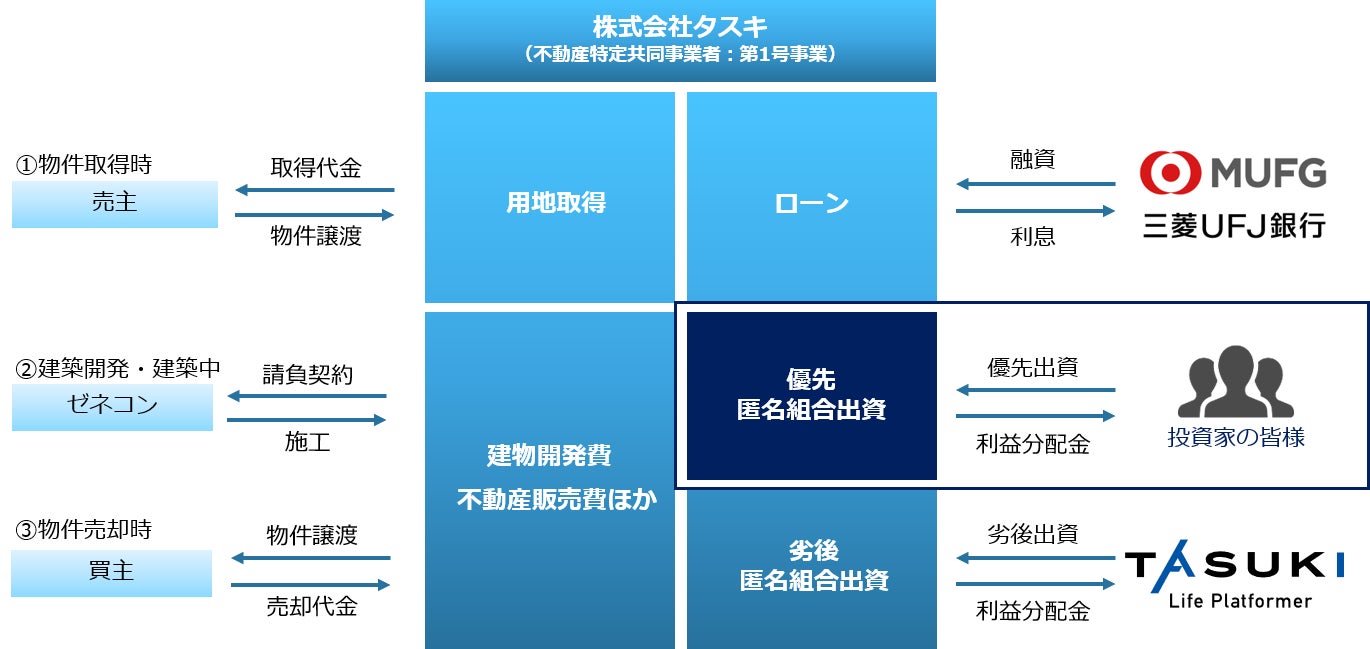 なお、本ファンドにおける用地取得にかかる費用については三菱UFJ銀行の融資によって行われています。