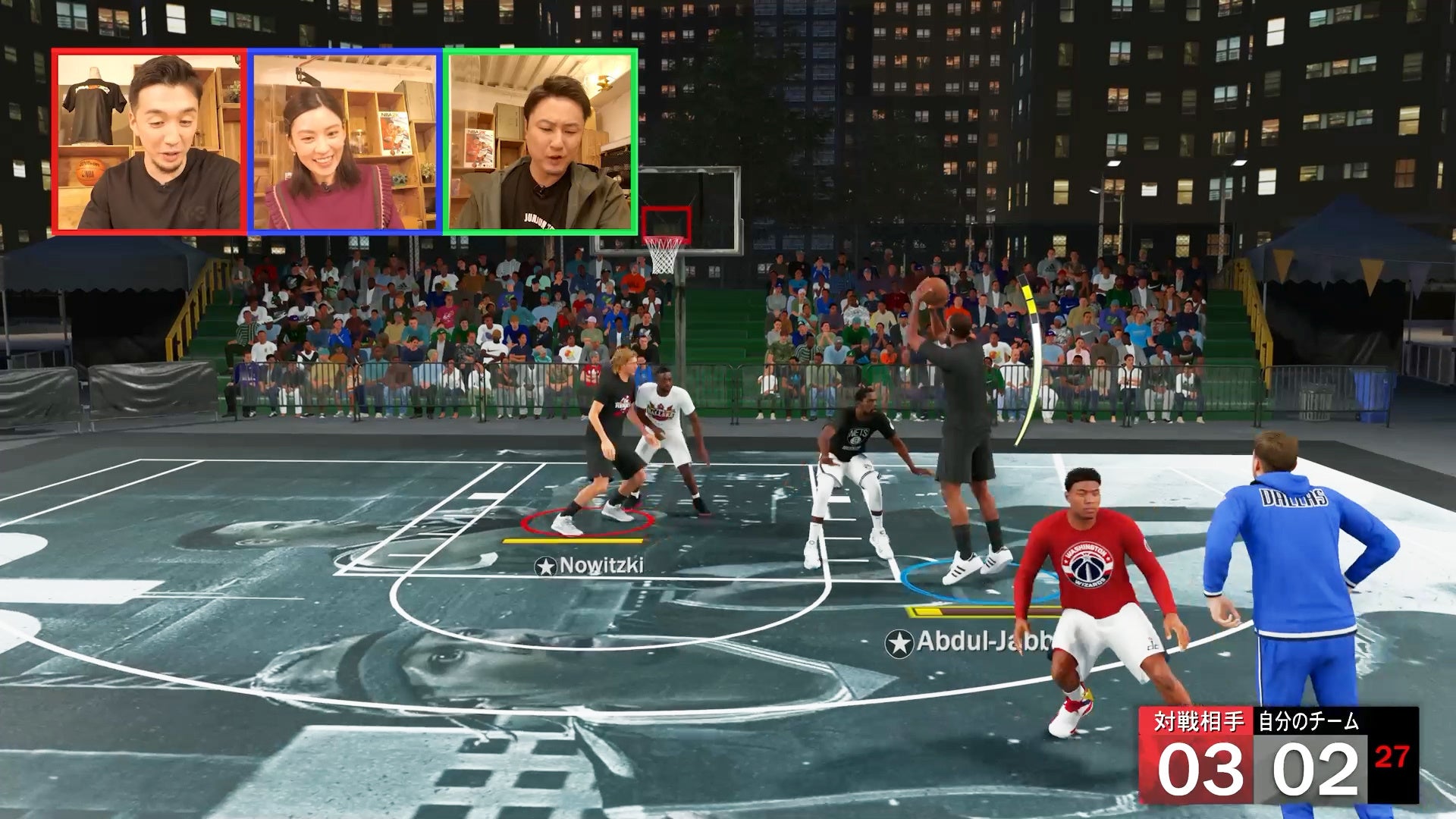 後編では、田渡凌選手(三遠ネオフェニックス)、渡辺早織(女優)、JUNJUN(早朝シューティング部/動画クリエイター)が前編のNBAクイズに登場したNBA選手を使い、練習したプレイを『NBA 2K22』の3on3で何回繰り出せるかを競うことに。試合中、全員がプレイを再現したいがために個人プレイが炸裂し、まさかの仲間割れ!