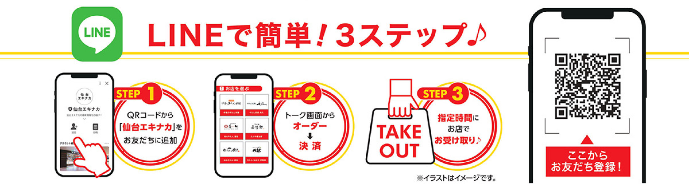 - QRコードから「仙台エキナカ」LINE公式アカウントを友だち追加