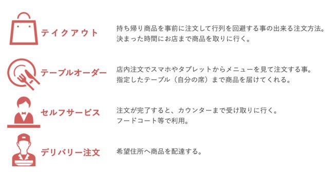 Lテイクアウト&オーダーで利用できるモバイルオーダーは以下の4種類です。