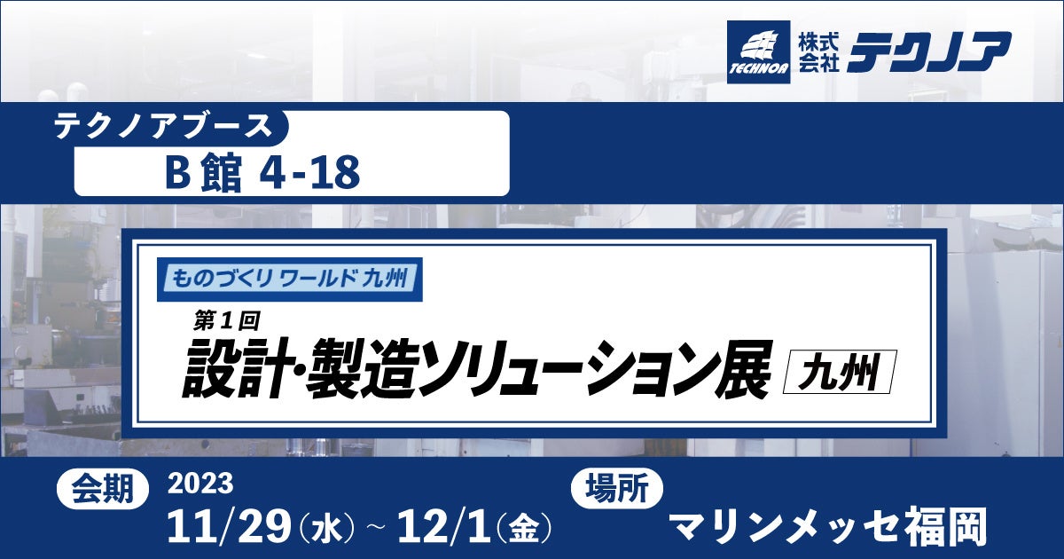 株式会社テクノア(本社:岐阜県岐阜市、代表取締役:山﨑 耕治、以下:テクノア)は、11/29~12/1に マリンメッセ福岡 で開催される「 第1回 ものづくり ワールド [九州] 」に出展いたします。