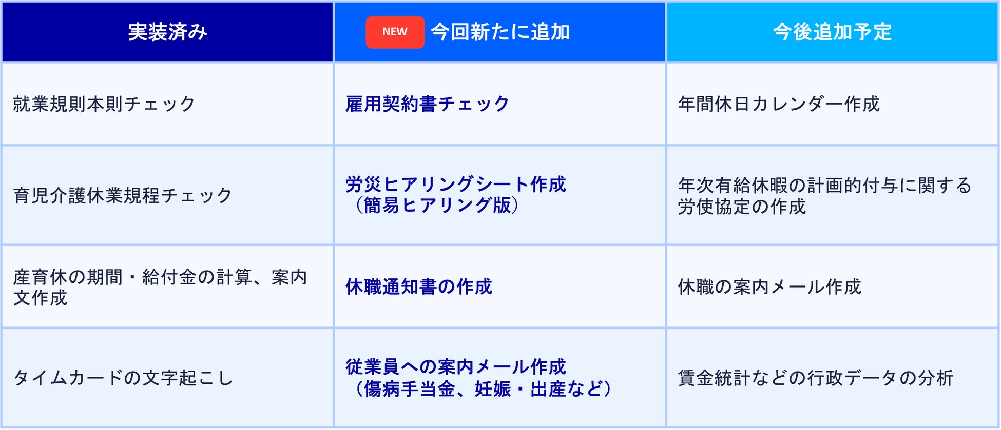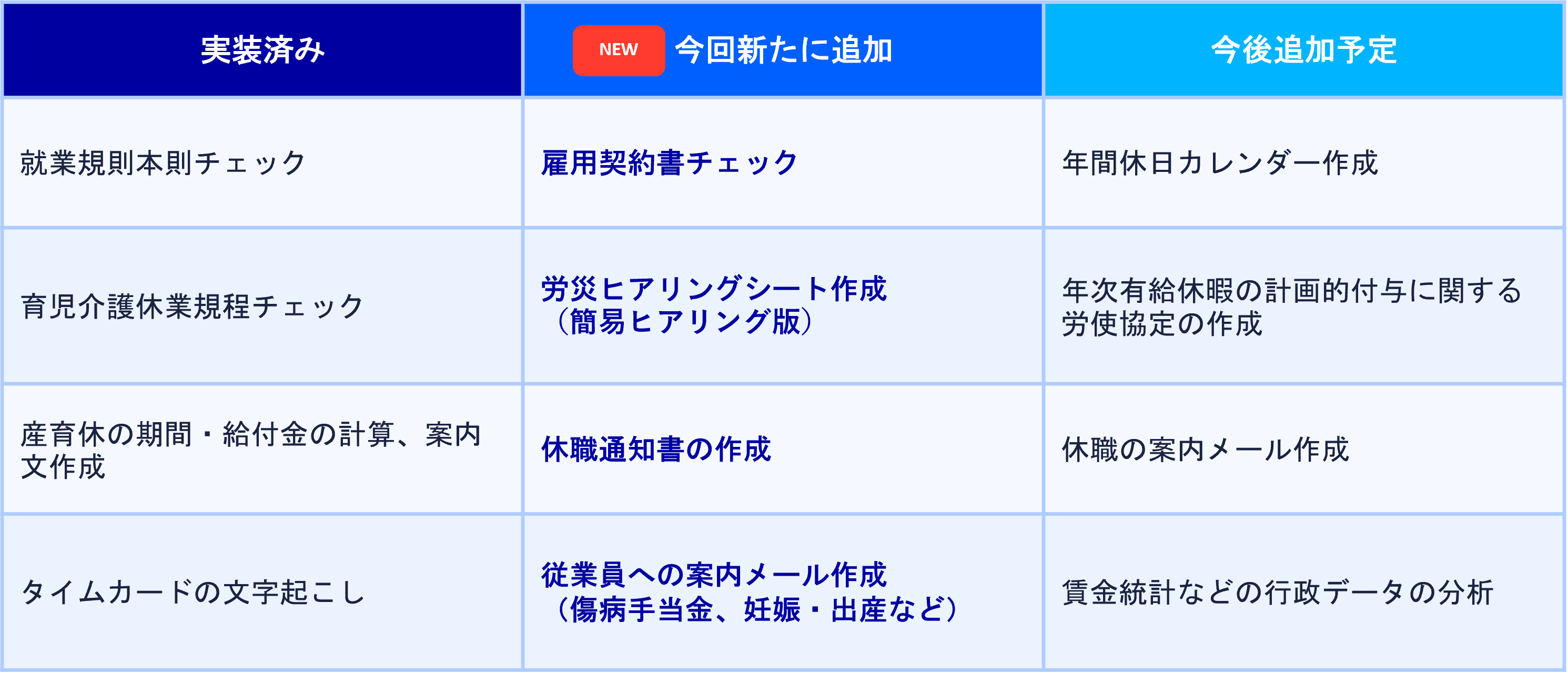 「調べる」から「実行する」へ。今回のアップデートでは、労務専門AIエージェントとして、以下の新機能を提供します。