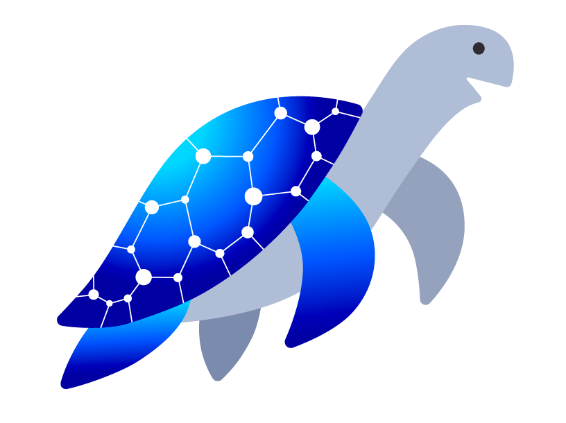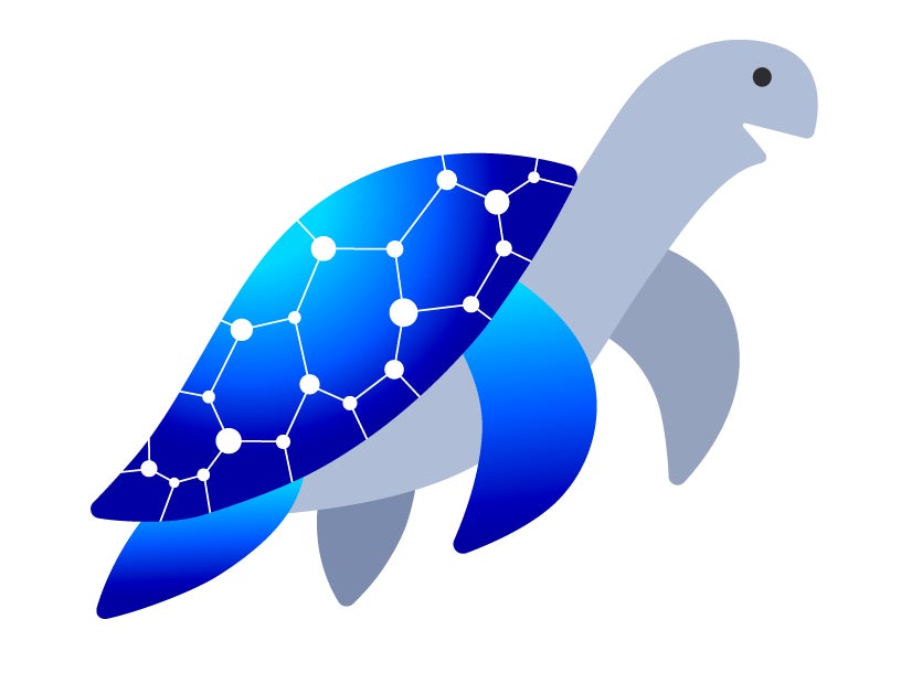 甲羅の模様はAIのニューラルネットワークを表現しており、ロゴの六角形とも世界観が統一されています。