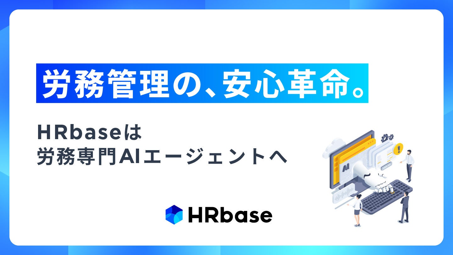 株式会社HRbase(本社:大阪市中央区、代表取締役:三田弘道)は、労務管理に「安心」という新たな価値を提供すべく、サービスを「労務専門AIエージェント」に進化させ、4月20日にスローガン・ロゴ・キャラクターを一新するリブランディングを実施しました。あわせて、社内問い合わせへの自動返信作成、業務シーンに特化したアシスタントAIの拡充など、複数の新機能をリリースします。