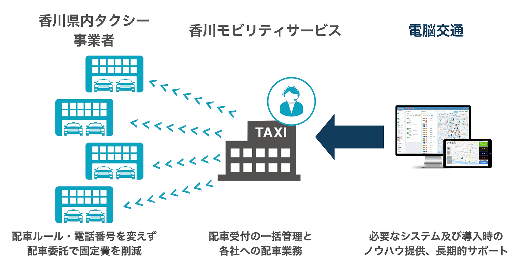 香川のタクシー移動をより便利・快適にする新会社香川モビリティサービス 電脳交通の配車システムを活用したタクシーの共同配車を開始