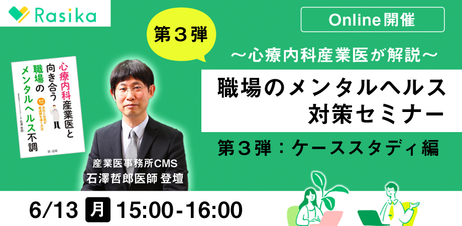 心療内科産業医が解説!病名に捉われないメンタルヘルス対策を考える無料セミナーを6月13日(月)に開催。勉強会シリーズ第三弾はケーススタディから正しい対応策を学ぶ
