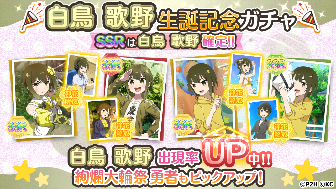 SSRは白鳥歌野が確定で登場するお誕生日当日限定のガチャ。