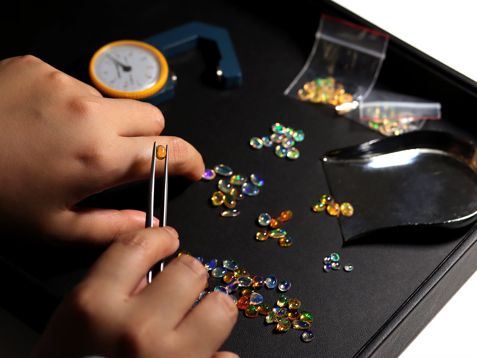 世界各国から仕入れる独自ルートを強みに、国内では「ビズー」でしかほぼ取り扱いのない、入手困難な宝石も揃います。各宝石は、当社バイヤーが、アメリカやインドなど世界中へ足を運び、一点ずつ丹念に原石の美しさを見極めています。キズをチェックし、美しく発色する、透明感のある高品質なものを選りすぐっています。