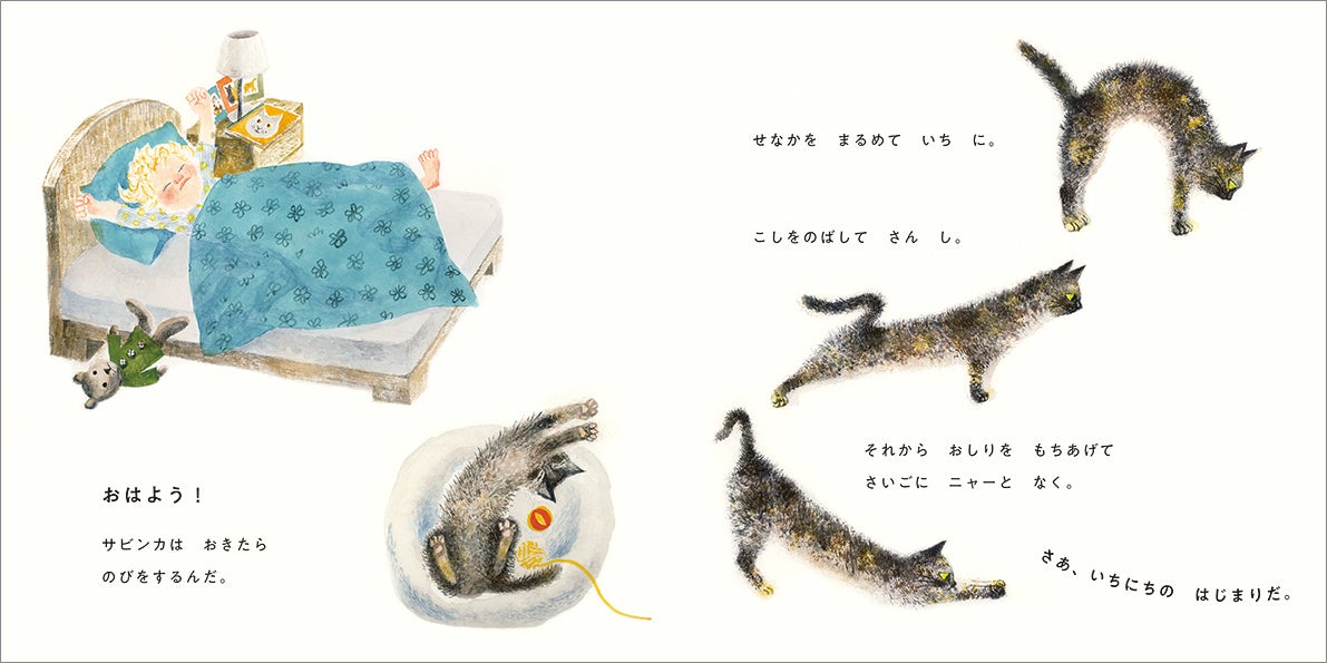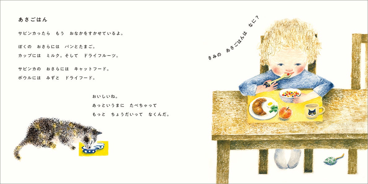 ぼくの ねこ。 ぼくの サビンカ。 ぼくの うでのなかで ごろごろ いうとき、サビンカは ごきげんなんだ。 サビンカは だっこがすき。 ぼくたち いっしょにいるのが だいすき。