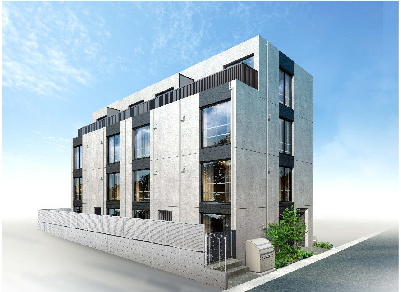 その中で当物件は閑静な住宅街に位置し、社会人を対象とした住みやすい環境を整えました。外部から視認性の高い面にはコンクリート打ち放し及び黒の吹付仕上げとし、スタイリッシュな外観に合わせて玄関ドアやサッシの色もブラック系で統一感を出しています。LEGALANDシリーズの特徴でもある壁式構造で柱がなく、お部屋の広さを最大限に確保できることからとても使いやすい間取りとなっております。