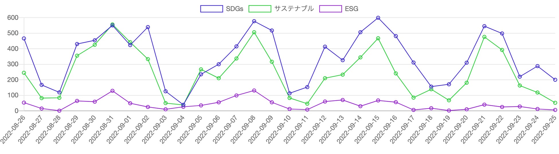 株式会社トドオナダ(代表取締役社長 松本泰行)は、2022年8月26日〜9月25日までのSDGs・ESG・サステナビリティに関するウェブニュースについて調査・分析いたしました。3,000以上のWEBメディアをモニタリングできるPR効果測定サービス「Qlipper」(https://qlipper.jp/)のデータに基づいた調査結果です。