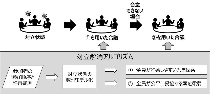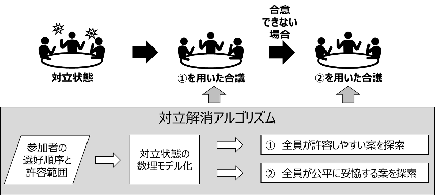 (日立京大ラボ “Composite Consensus-Building Process: Permissible Meeting Analysis and Compromise Choice Exploration” https://arxiv.org/abs/2211.08593 )