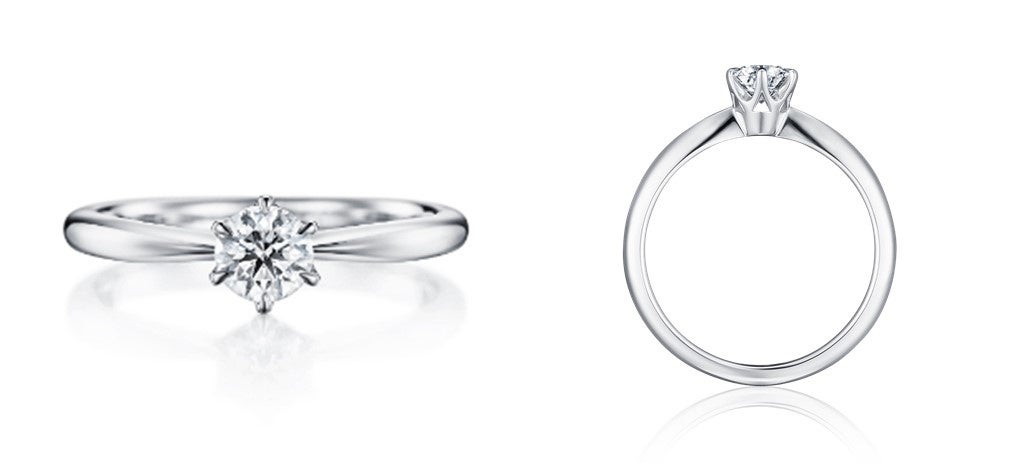 シンプルで美しい、伝統的な立て爪スタイル。エンゲージリングの定番の、輝きのあるデザインです。