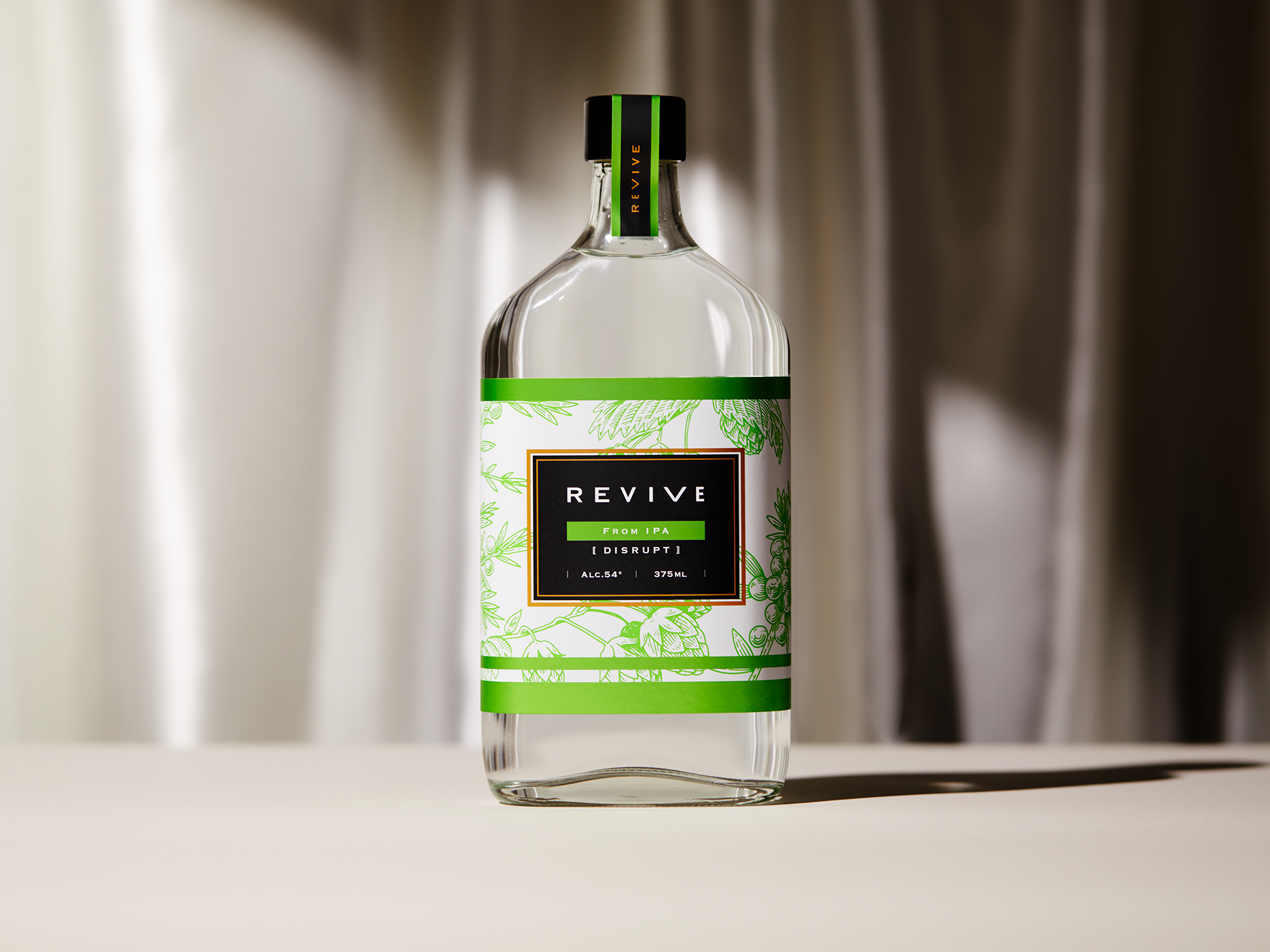 『REVIVE』は、 「バドワイザー」ブランドをグローバルで展開するアンハイザー・ブッシュ・インベブ ジャパン会社 (所在地:東京都渋谷区)と、老舗日本酒メーカー 月桂冠 の3社で共同で、2020年9月に数量限定で生産いたしました。新型コロナウイルス感染拡大直後、外食産業やビール市場は深刻な状況となりビール販売数量は大幅に落ち込みました。再生と循環をテーマに、通常は廃棄される「酒粕」をジンに再生する取り組みを行ってきた『エシカル・スピリッツ』は、この事態を受けビールを蒸留しジンに変える技術を月桂冠へ提供。また廃棄予定であった約8万杯分のバドワイザーの提供を受け、世界にも類を見ない漬け込み式のビールから生まれたジン『REVIVE』が誕生しました。