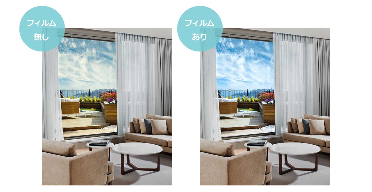 ポジカ®くっきり™フィルムは、三井化学が開発したイエローライトをカットする「くっきり™色素」を活用し、窓越しの景色をより色鮮やかに感じられるようにするウィンドウフィルムです。三井化学が半世紀にわたり積み重ねてきた、視覚と材料に関する研究開発の知見をもとにしており、自然光の眩しさを抑えながら、色のコントラストを引き出すことで、屋外の景色や空間の表情を心地よく際立たせます。「見ること」に関する工夫を通じて、リアルな空間における感動や快適性を高めることが、ポジカ®の基本的な考え方です。