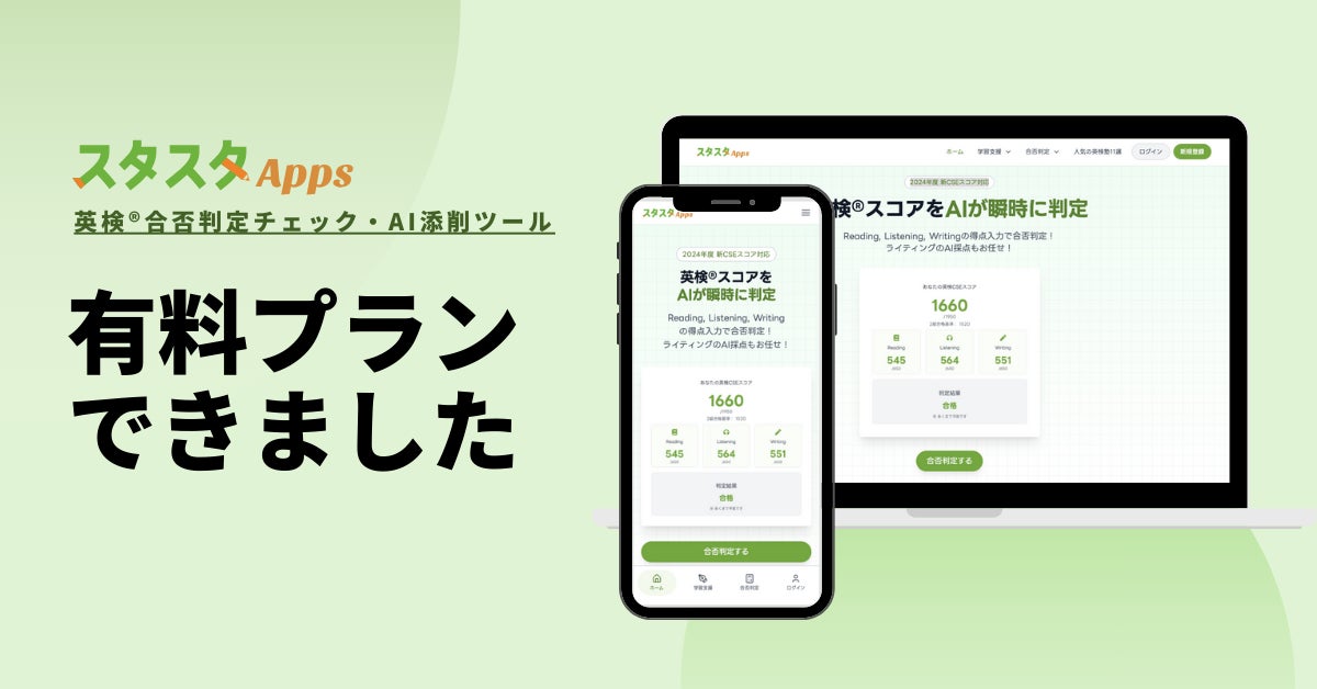 英検®学習支援アプリ「スタスタApps」、有料プランの提供を開始—無料枠5回から拡張