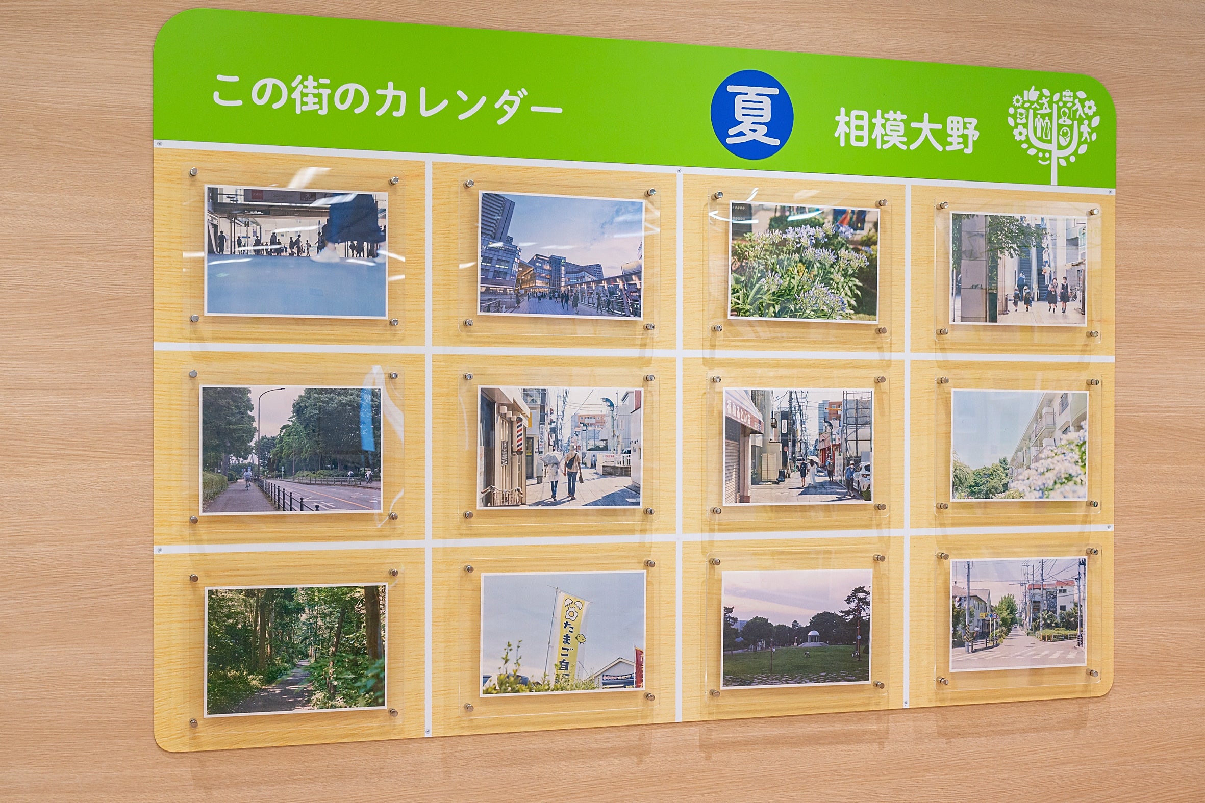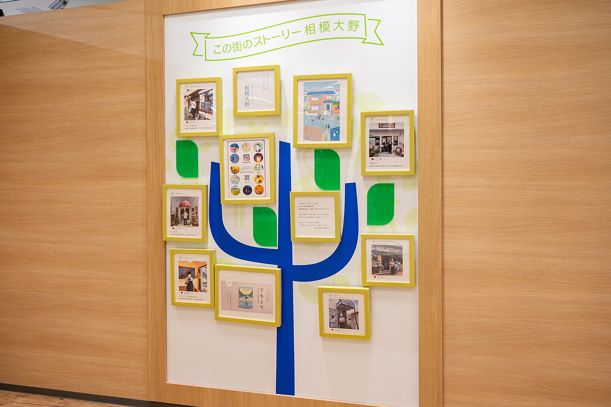 街を背景に撮影した相模大野店のスタッフの集合写真も展示しています。