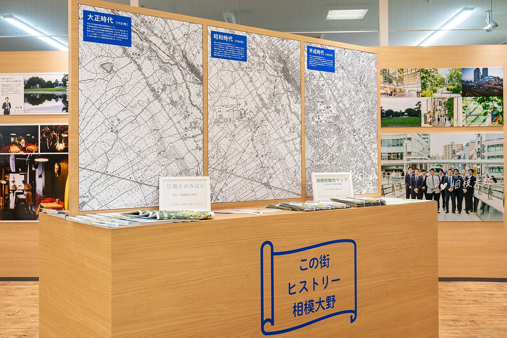 また、おすすめスポット・飲食店等のマッピングや、地元の観光協会と連携した街歩きマップの設置により、相模大野の「歩き方」も併せてご提案する展示となっています。